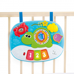 The 2-in-1 Ocean Fun Activity Center brings playful ocean adventures to your little one’s learning and playtime. Designed with bright ocean characters, it offers interactive fun that stimulates curiosity and imagination. It features 2 engaging modes: Free Play for open-ended fun and Play Along Tunes to introduce rhythm and music. Activities include 3 light-up piano keys, a click-clack fish, rattle spinner, sliding star, push-down squeaker, and a safe mirror for self-discovery. The versatile design easily attaches to a crib for early play and later converts into a standing activity table with detachable legs, adapting as your child grows. Powered by 2 “AAA” batteries (included), it is safe, durable, and ideal for children aged 9 months and above.