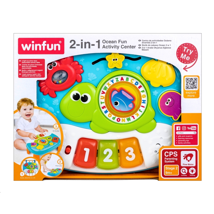 The 2-in-1 Ocean Fun Activity Center is designed to grow with your baby, offering both crib and table play. With lights, music, and interactive ocean-themed activities, it supports sensory development, motor skills, and imaginative play in a fun and engaging way.