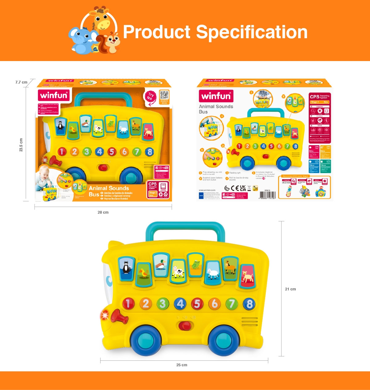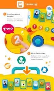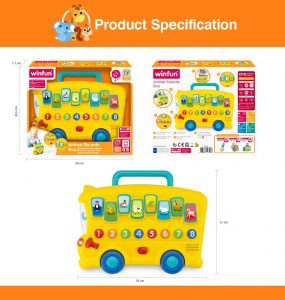 - Plays 8 animal sound effects and cheerful melodies