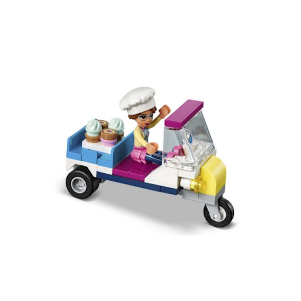 Step in through the cafe doors to find a cozy table and your friend Olivia, just about to head out and make a delivery with her special delivery scooter!