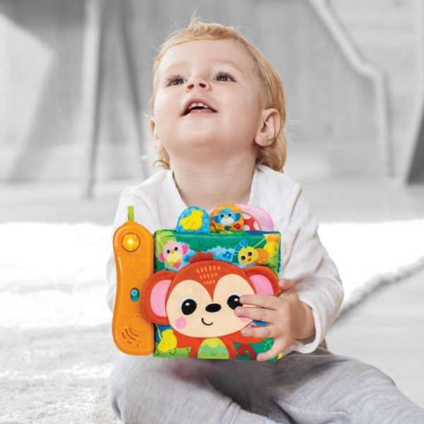 This sensory book blends comfort and play in one. With soothing teether, interactive textures, lights, and music, it helps stimulate sensory development while keeping babies engaged at home or on the go.