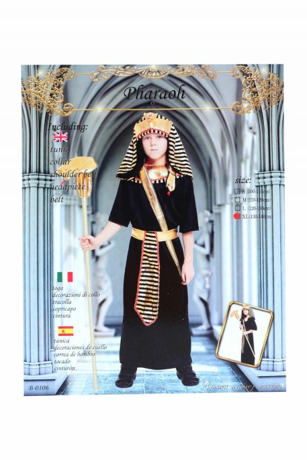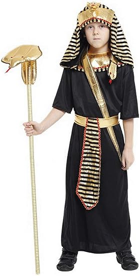 This historical Kids Pharaoh Egyptian Costume is a high-quality cosplay outfit, perfect for dress-up parties, Halloween, and school events. The set includes a Tunic, Collar, Hat, and Waistband, providing a complete look for the ancient ruler. The costume is made from soft polyester material, ensuring comfort during wear. It is ideal for various celebrations, including dance evenings, Children’s Day, and outside carnival night parades.