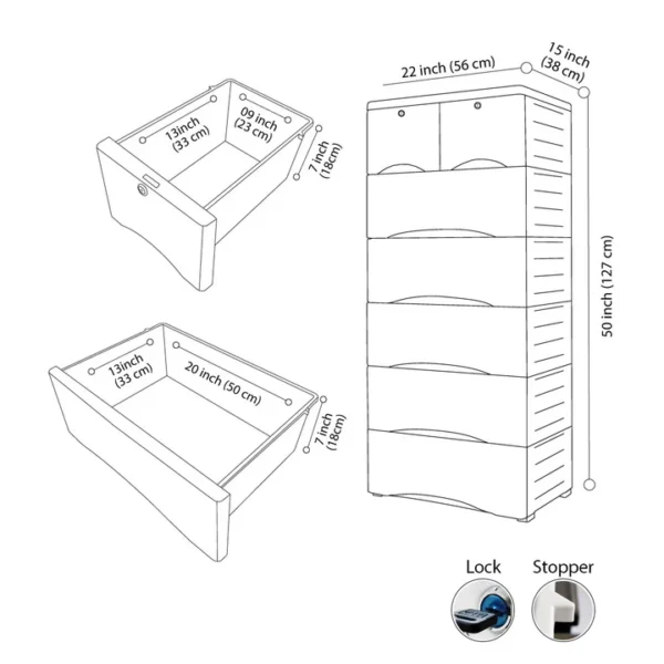 Kids Storage Home Box 6 Layer with Drawers and Locks