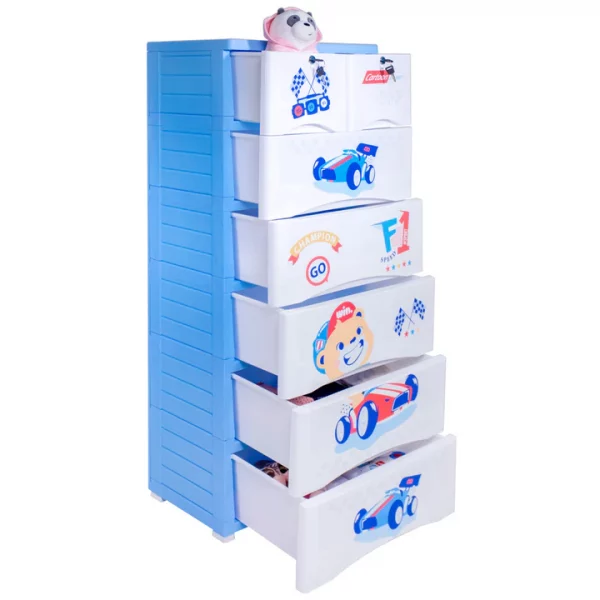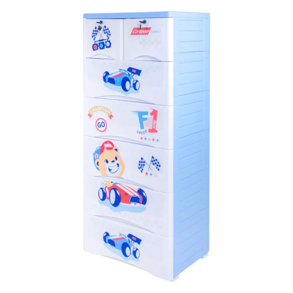 This Kids & Babies Storage Home Box is a large-sized plastic drawer unit designed with beautiful print themes to organize a child’s space efficiently. It is constructed from strong and durable imported raw material, ensuring long-term reliability and use. The 6-Layer configuration provides extensive storage, featuring five large drawers and two smaller drawers equipped with locks for securing valuable items. The spacious design offers ample room to easily store and categorize various essentials, including clothes, toys, books, and tools. For convenient mobility, the unit is fitted with wheels to allow easy movement around the room. Additionally, stoppers are included to prevent the drawers from accidentally falling out when pulled. This versatile storage solution is available in appealing prints, including the popular CARS and Elephant – Blue themes.