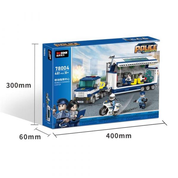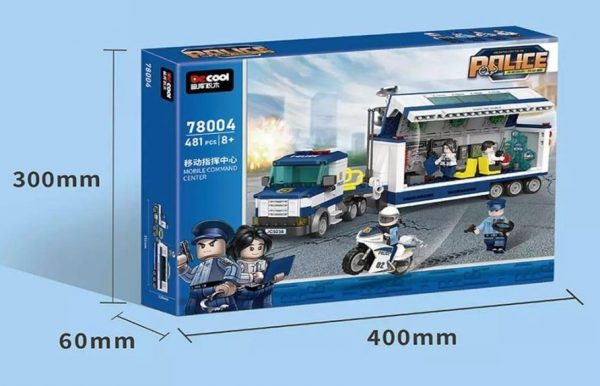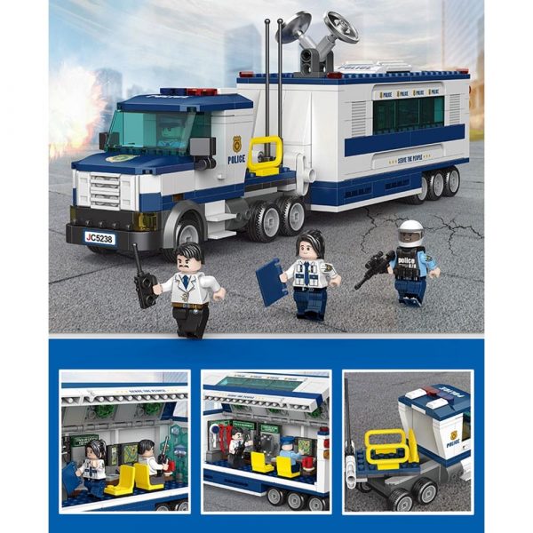 • Vehicles: Command center truck with detachable trailer (33.1 x 11.6 cm), police car, and motorcycle