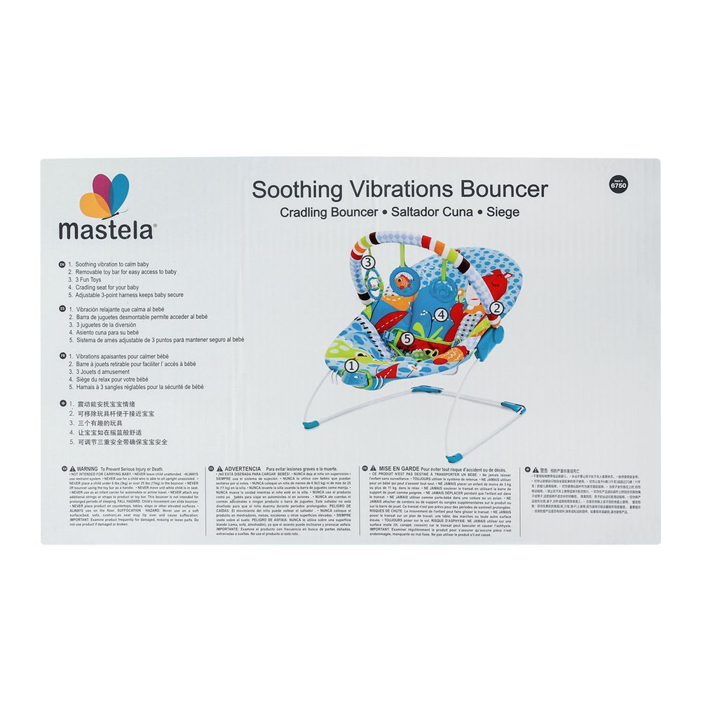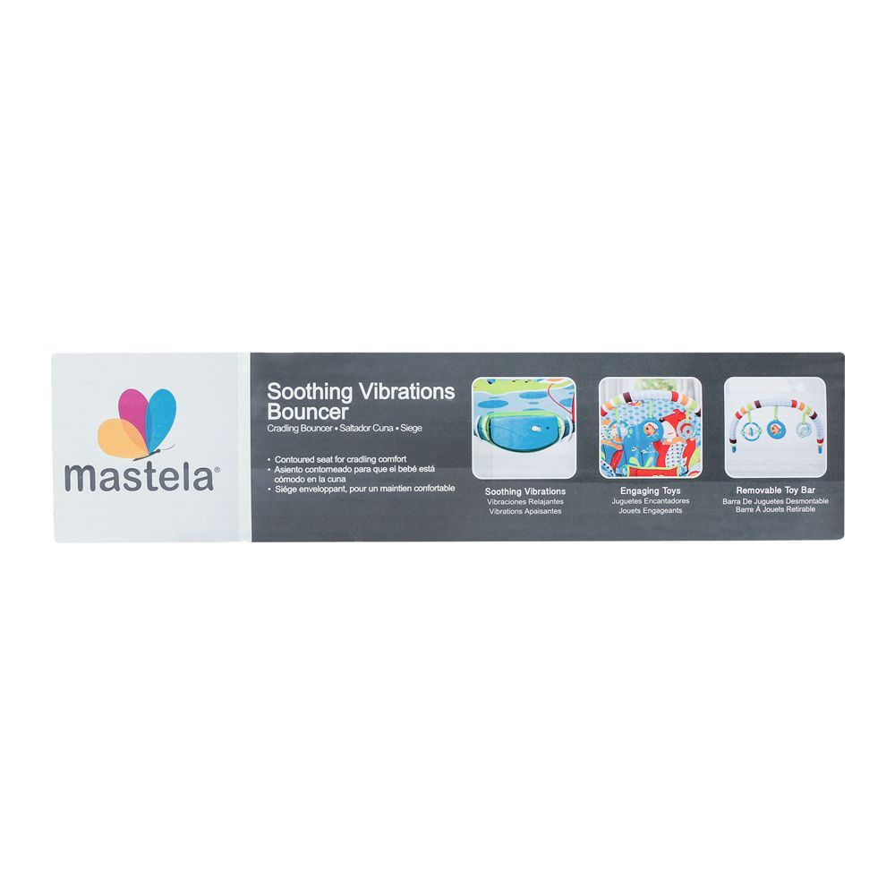 The Mastela Soothing Vibration Bouncer Sea Green offers gentle vibration and a comfortable cradle seat that helps soothe and relax your baby. Its removable play bar with fun toys encourages playtime, while the soft plush fabric ensures maximum coziness. Designed with safety and convenience in mind, this bouncer provides a calming experience for both baby and parent.