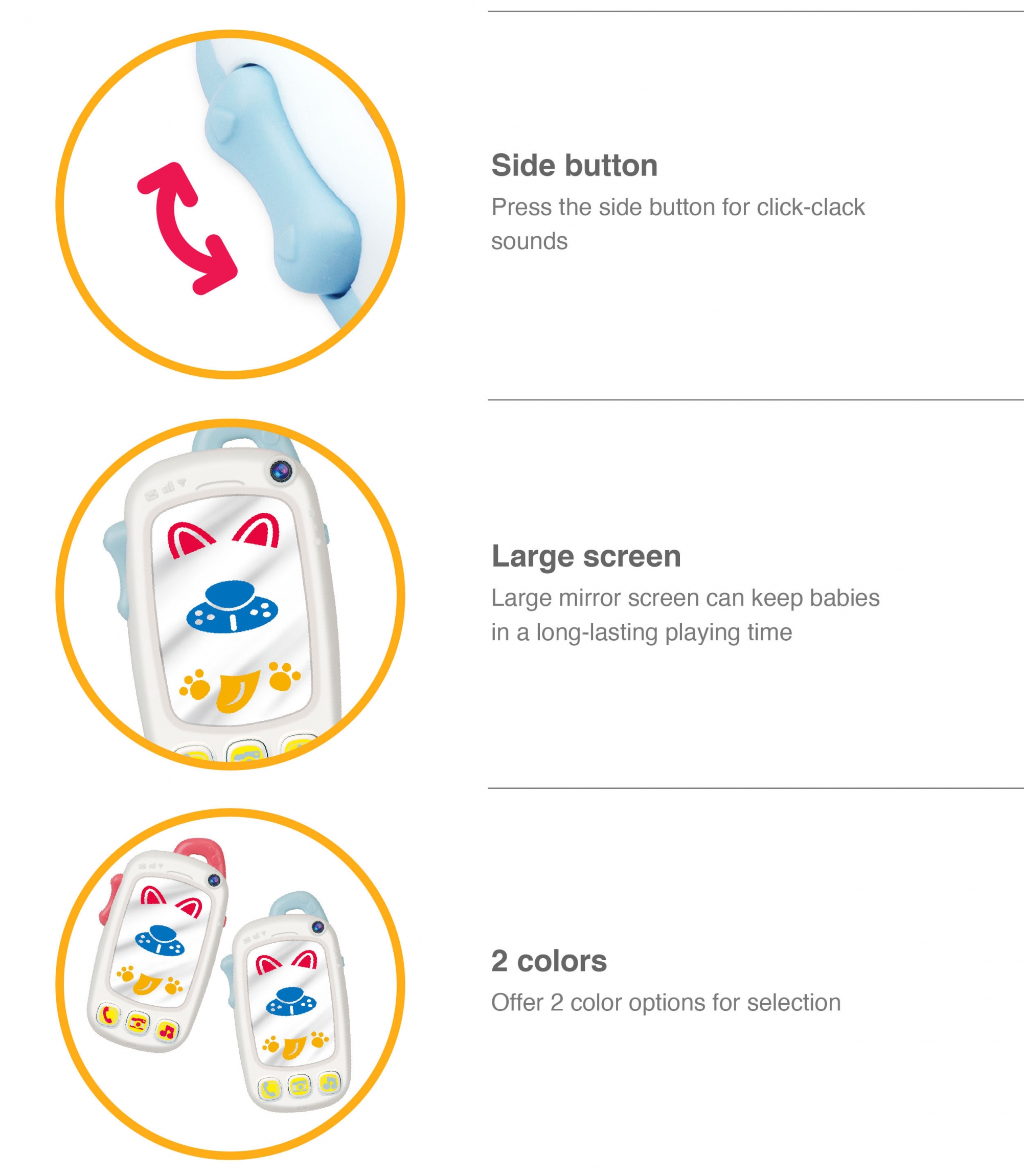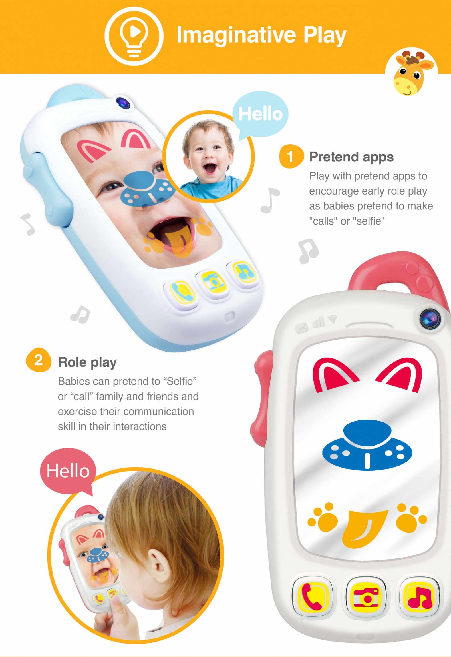 - Baby selfie phone with light-up mirror