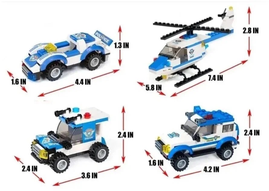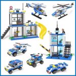 β’ Features: Dual police stations, helicopters, cars, portable box with lid baseplate